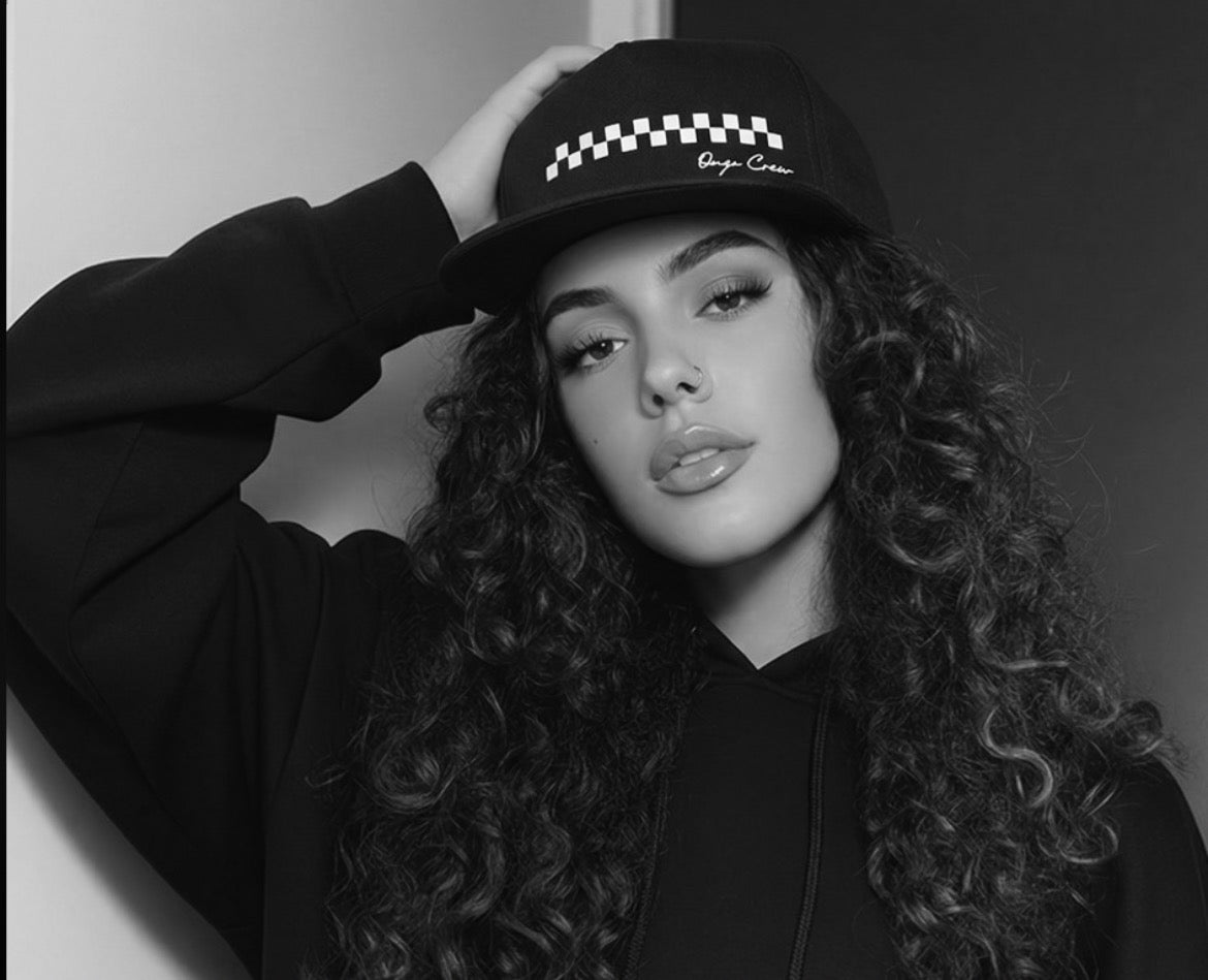 The Ö.C Check Mate Cap is a 5-panel, mid fit hat featuring an embroidered checkers art on the off left center front. It is designed with a clasp closure and an ÖC flag label at the back.